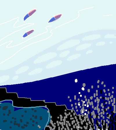 潜水艦がさかなのおとをソナーします